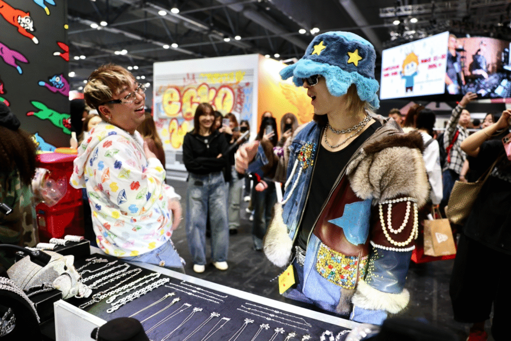 ComplexCon Hong Kong, BBC/ICECREAM booth. LNGSHOT, the boy group launched under Jay Park’s label, showed up to drop an exclusive BBC collaborative T-shirt. The moment the four members appeared, the booth was instantly swallowed by the crowd. But once people pushed their way in, they found something else waiting. A full jewelry counter lined with collaborative pieces built around BBC/ICECREAM’s iconic designs.